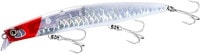サラシのできた荒れた磯を攻略するシャローミノー。サラシの中でほんろうされるベイトフィッシュを演出します。ジェットブーストが強い向かい風でも飛距離を稼ぎ、強い浮力がサラシの中でも波に漂わせることを可能にします。使い方はラインを張らず緩めず、ゼロテンションで漂わせるイメージで。漂わせているだけでもフラッシュブーストと狂鱗カラーが常にヒラスズキを誘い続けます。テストでは同じサラシから連発することもたびたび。磯ヒラに特化した専用ミノーの登場です。