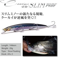 Cookai SLIM 140F は、河口やサーフ、干潟、磯などショアからのシーバスゲームにおいて幅広く対応するハイレスポンス・スリムミノー。極限までスリムに突き詰めたボディ設計と、抵抗を徹底低減した極小のチップビルにより、低水圧でもしなやかなタイトピッチ・ロールアクションを発生。リアルベイトのような極細の線光明滅を放ち、食い渋るモンスタ-のバイトを誘います。また、スリムボディに搭載された3つの高比重タングステンウエイトボールによる3連重心移動が、圧倒的なロングキャスタビリティに貢献。荒天時の逆風・強風下においてもロングディスタンスアプローチを可能にし、従来の同サイズミノーを遥かに上回る驚異的な飛距離を叩き出します。匠の技術が生み出した究極のスリムミノー、Cookai SLIM 140Fがシーバスゲームの新たな一手を切り拓きます。